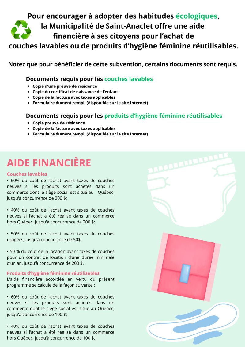 Nous tenons à vous rappeler qu'il est encore possible de bénéficier de la subvention offerte par le Conseil municipal qui versera à tout propriétaire d'immeuble existant 75 $ (sur présentation d'une preuve d'achat) lors du remplacement d'un cabinet d'aisance utilisant plus de 6 litres par chasse d'eau par un cabinet d'aisance utilisant 6 litres d'eau et moins.